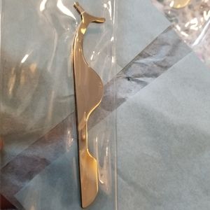This listing is for ONE PAIR of gold colored, stainless steel eyelash tweezers. New, unopened, and unused. Individually packaged.