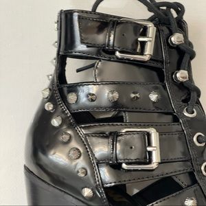 🎉HP🎉 Sam Edelman black patent studded bootie. Buckles and hooks on upper. Fashionable and versatile. Wear with rolled up jean or dress. Cut outs on sides. Host pick @heyitskimmie21