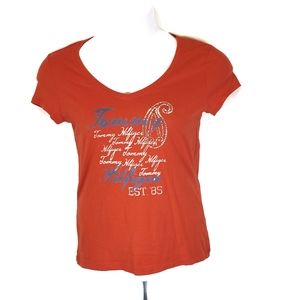 Tommy burnt orange tee in excellent condition! Size small standard fit. 100% cotton v- neck style. All measurements are taken laying flat and bust is taken pit to pit, length is measured from the neck line.