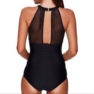 NWT ✨ Tempt Me | Neck Plunge Sheer Mesh Ruched Monokini One Piece Swimsuit | Women's Size Large 👙