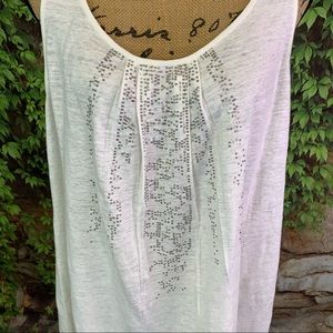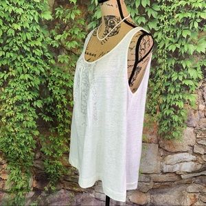 White linen scoop neck tank with sparkle detail from Eileen Fisher.