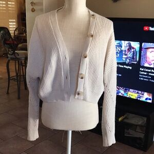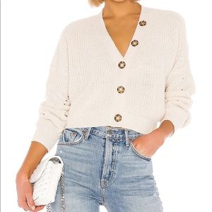 Line & Dot Sydney Scarlett cardigan asymmetric buttons cropped style fun cute sweater knit comfy. Sold out on their site on Revolve.
