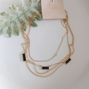 Beautiful gold four chain necklace, with black rectangle stone feature. Brand new, nickel free.