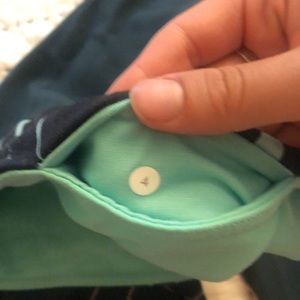 Worn only a few times, just had a hard time matching it with my tops. Colors are like a jade and reversible side is light turquoise