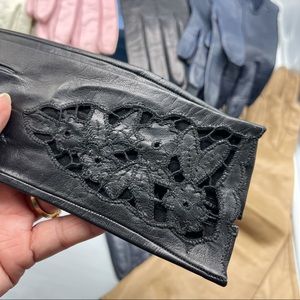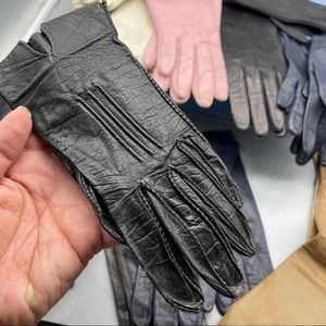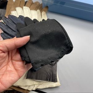 Awesome leather and fabric vintage gloves bundle. There are 12 pairs. They would fit a medium to small hand. Over all good condition does have wear due to age but nothing is falling apart or no tearing.