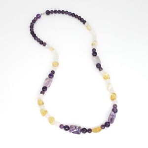 This is an handmade Amethyst and Citrine Beaded Necklace that is 27 inches long.