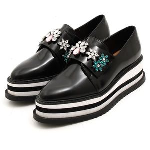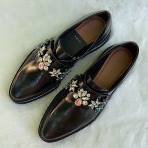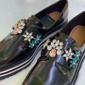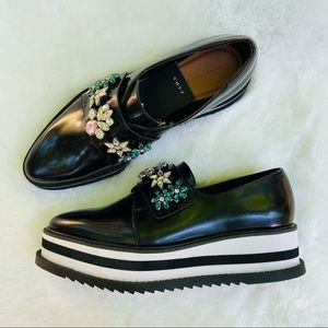 New Zara Trafaluc Bejeweled Platform black Shoes