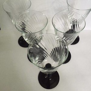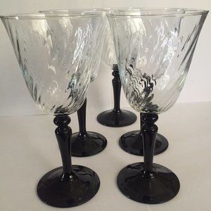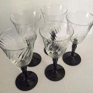 Set of 5 Vintage Luminarc Onyx Black Stem Optic Swirl France Crystal Wine Glasses