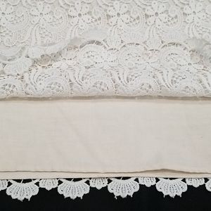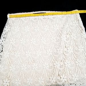 Zara Woman laced cream beige Mini Skirt, left side zipper, lined. Material tag is missing but feels Cotton. Excellent condition. Size L but I think runs smaller, please see measurements.