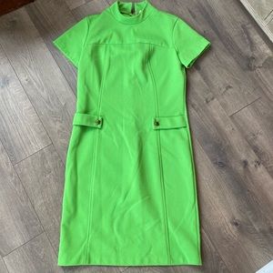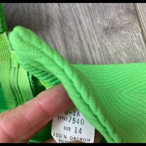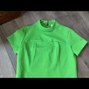 Awesome,vintage MOD mini dress. Bright green. Babydoll sleeves. High collar. Zipper back. Nice GoGo style. Made of 100% Dacron polyester. Sz 14