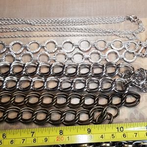 Antique brass tone twisted curb chains,textured silver tone cable ,three strand small cable chain necklace. Most have clasps. Last photo is just bulk chain without clasps.20"-28" length. Great for DIY jewelry or other crafts.