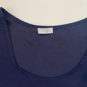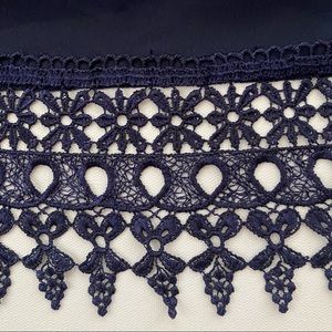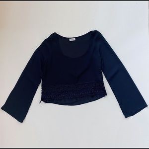Tobi Sheer Navy Blue Chiffon Lace Trim Crop Top
