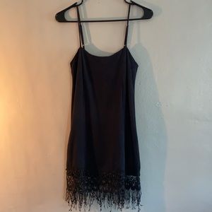 Blue Life Suede Black Mini Dress w/ Fringe Trim - XS