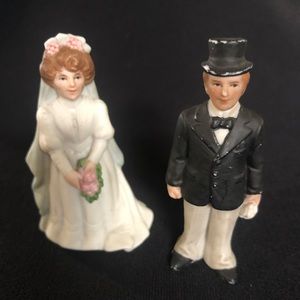 Rare Vintage collectible Lefton Porcelain Bride And Groom Wedding Cake Toppers. Each measures approximately 2-3/4” tall.