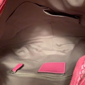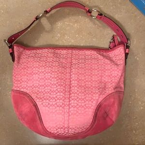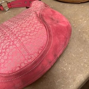 Super cute AUTHENTIC pink Coach hobo. See pics for wear on suede.. one tiny black spot. (Haven’t tried to clean) Inside is super clean!!