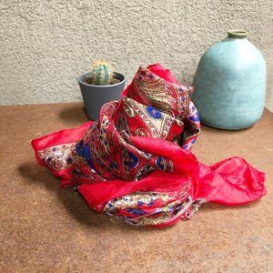 This stunning vintage bohemian silk floral scarf can be worn in so many ways! Use it as a backless halter top, bandeau crop top, wrap it around your neck, tie it in your hair, or on a purse for a colorful accent. Very versatile & unique!