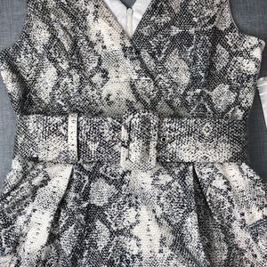 Beautiful Snake Print Belted Fit & Flare Dress by Julia Jordan. Has Removable Belt, Side Pockets and Zipper Closure At The Back. Fully Lined. Size 6