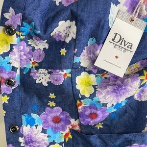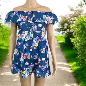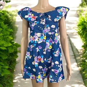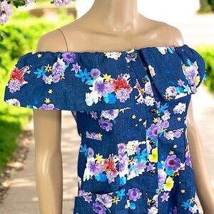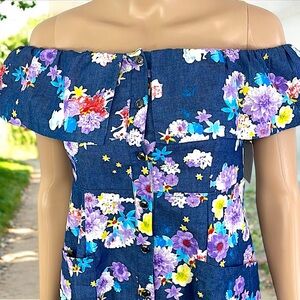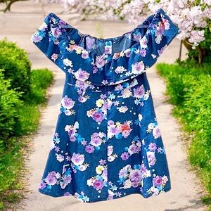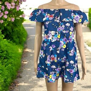 NEW Diva USA Floral Chambray Blue Flutter Sleeve Dress