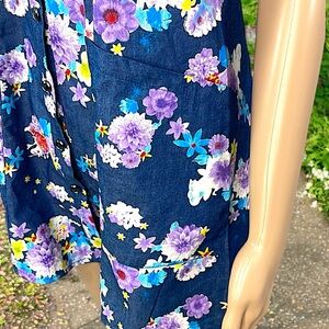 🌼 Chambray Blue Floral Fit & Flare Dress with Pockets – Size M