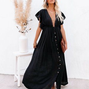 New Bohemian Long Black Gauze Maxi Summer Dress