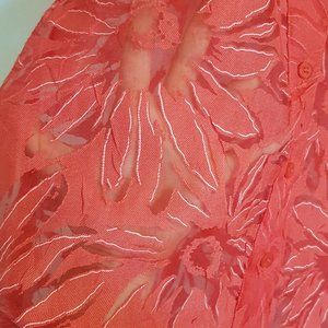 - Sheer fabric with floral print (see last photo) - Cute cap sleeves - 100% polyester - Looks great with leather tights or denim - Very good condition