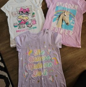 (3) Children's place 2 Unicorn tee one cat girls