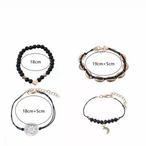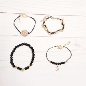 BTQ 4pc Black & Gold Cowrie Shell Bracelet Set