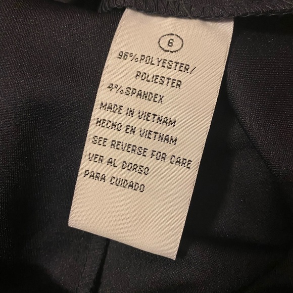 I only wore this beautiful dress once. Made of polyester and spandex, this dress is super comfortable. Also looks very classy with the attached faux pearls and exposed zipper back. Make me an offer!