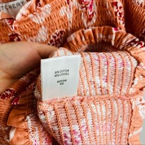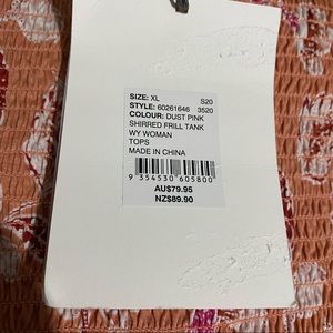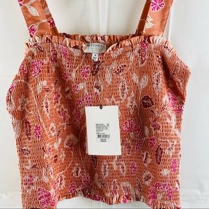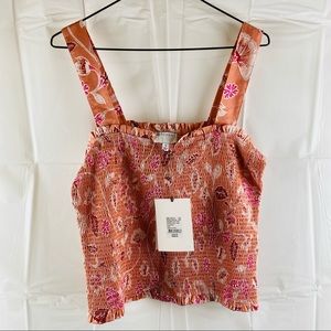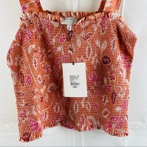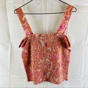 Witchery Pink Floral Shirred Frill Trim Square Neckline Cropped Tank Top Size XL