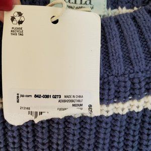 NWT A.N.A. Striped Knit Sweater M. Navy blue and white long sleeve sweater.