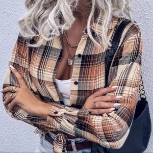 Boho khaki plaid casual button down shirt