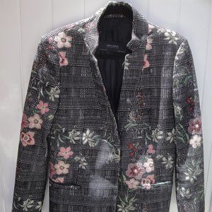 Zara Plaid Floral Embroidered Frock Coat Blazer Jacket Size Med