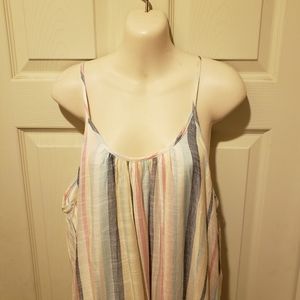 For sale: Seven 7 Jean Maxi Dress Large, new with tags. Ivory with yellow blues and pink stripes.