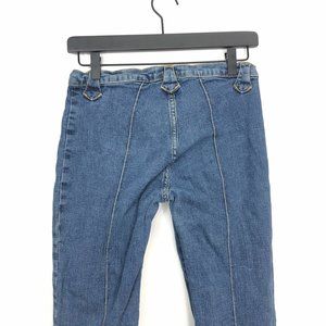 Tags: jeans, jean, denim, pants, bottoms, flare, bell bottom, raw hem, raw edge, frayed, fray, distress, distressed, tie, corset, tie up, shoelace tie, low rise, vintage, VTG, 90s, rare