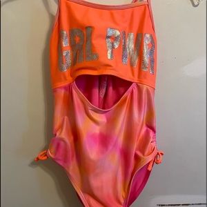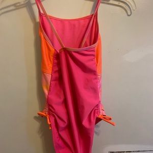 Wonder Nation big girls one piece swimsuit peekaboo with ruching at sides swimming suit summer beach pool