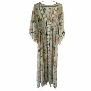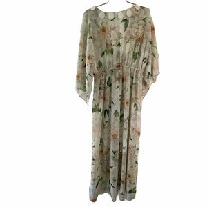 Farm Rio Dahlia Dress Floral Maxi Lace Chiffon Cream Kimono Sleeves Size Medium. *No Slip.