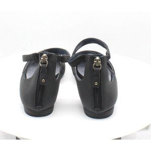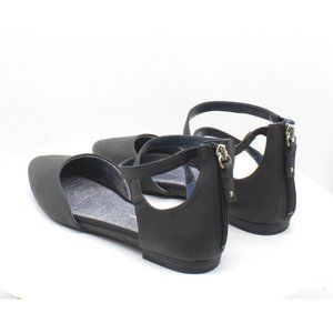 Almond-toe crisscross-strap ballet flats with zipper closure