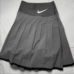 DRI-FIT pleated athletic skirt with black trim and white Nike logo. Comes with built in spandex shorts underneath. Perfect for tennis, the gym, or casual use.