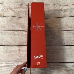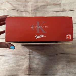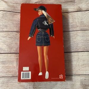 Calvin Klein Jeans Barbie 1996. Barbie is mint in the packaging and in excellent condition. The box has some wear on the corners. The velcro for the flap on the front of the packaging is not attached but still attached to the other part of the velcro and can easily be fixed (shown in last picture)