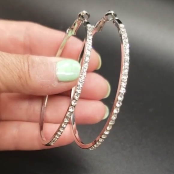 I'll Try & Restock Silver Tone Rhinestone-encrusted Hoop Earrings