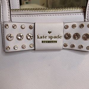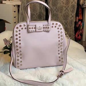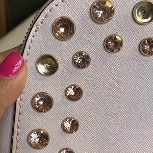 Pastel pink Kate Spade handbag, used condition. Has color transfer, missing stones, other than that in good condition. See all pictures/vid.