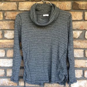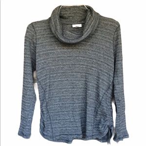 J.Jill Ribbed Cowl / Turtle Neck Top. This has so much character... Texture and Detailing. It has a Loose Turtle / Cowl Neck It is a Ribbed... Almost a Thick Insulated Material. Even the color of it Mimics the Texture. It also has Functional Drawstrings on the Sides. It also has plenty of stretch to it, so you will have the best of both worlds. Character & Comfort.