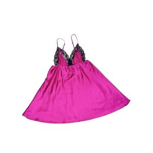 Victoria’s Secret Magenta Lace Trim Satin Babydoll Slip from 2011, size medium