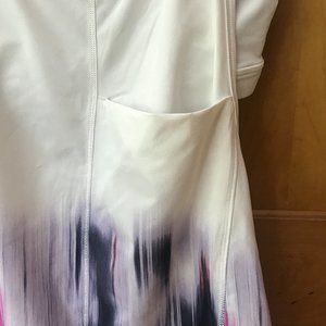 Lululemon Indigo Mirage Run For Your Money Tank. Engineered Mirage Deep Indigo / White. Wide adjustable straps lay. Shelf bra is quick-drying & moisture-wicking. Low-cut arms & racerback. Front pocket. Chafe-resistant flat seams. Longer length in back. White w/ purple & pink design on the bottom. Excellent pre-owned condition. Tags have been removed.
