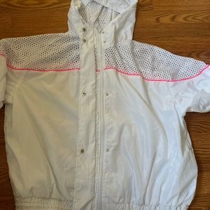 EUC women’s windbreaker with fishnet design on top. No stains or holes.