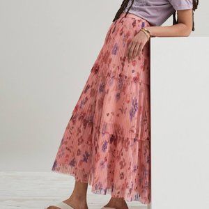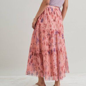 Size SP HTF Anthropologie Tomasa Pleated Tulle Midi Skirt by Geisha Designs. Dreamy florals, flouncy tulle, and perfectly polished pleats - the list of things to love about this feminine skirt is boundless. NWT.