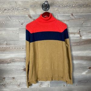J.Crew M Colorblock Turtleneck in Supersoft Yarn. Includes Tan, Navy Blue, and Red Colorblocking.