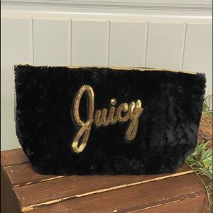 New! Juicy Couture Black Faux Fur Cosmetic Bag