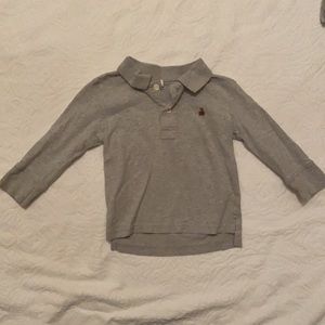 EUC. One shirt is a grey polo with teddy bear logo. The other has raglan sleeves and is multi colored grey. Please see images for details. Comes from a pet free smoke free home.
