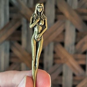 I just think this is odd and super cool! 2.6”. It’s a vintage style long haired beauty snuff spoon. Can be worn as a pendant. Definite conversation piece…